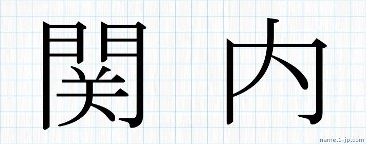 「関内」習字見本 かっこいい関内の名前