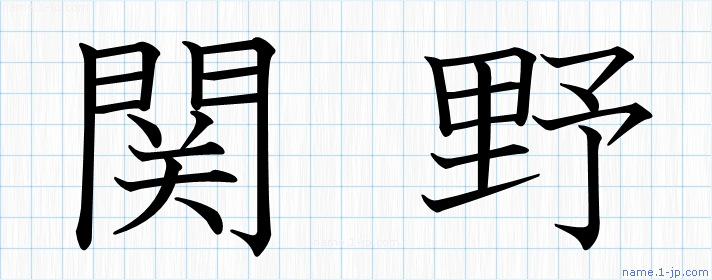 「関野」習字見本 かっこいい関野の名前