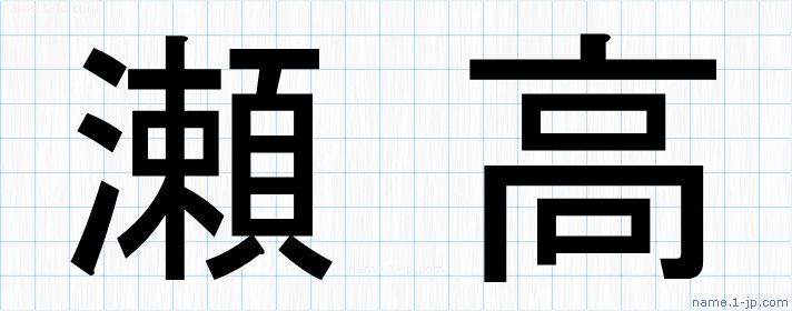 「瀬高」名前の見本 瀬高書き方