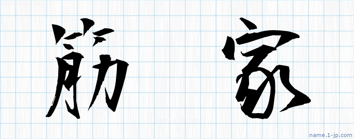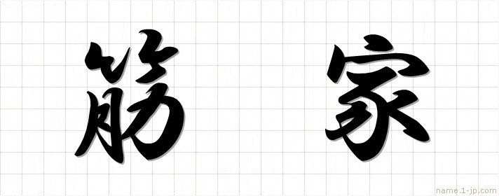「筋家」習字見本 かっこいい筋家の名前