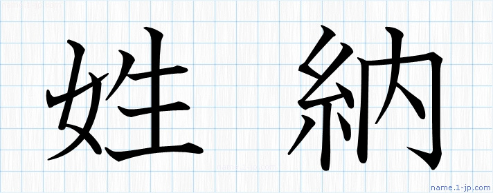 「姓納」習字見本 かっこいい姓納の名前