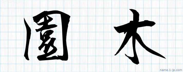 毛筆で書いた習字の見本のように綺麗な「園木」の表記