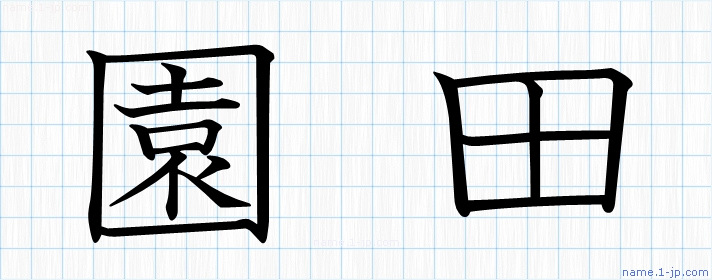 「園田」名前の見本 園田書き方