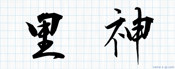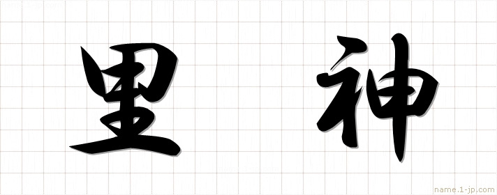 毛筆で書いた習字の見本のように綺麗な「里神」の表記