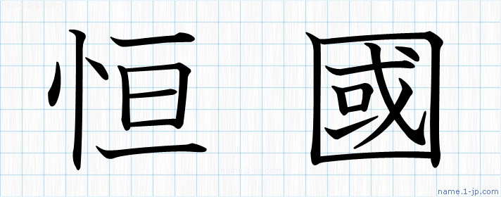 「恒國」名前の見本 恒國書き方