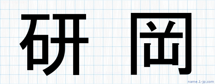 「研岡」名前の見本 研岡書き方