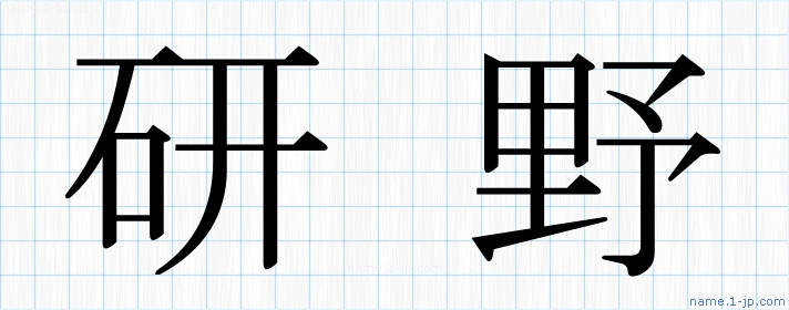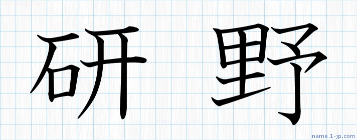 「研野」名前の見本 研野書き方
