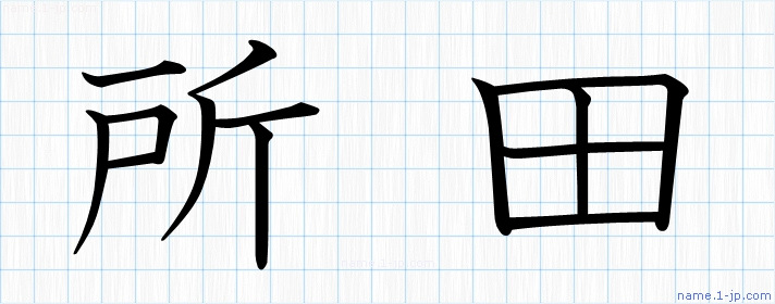 「所田」名前の見本 所田書き方