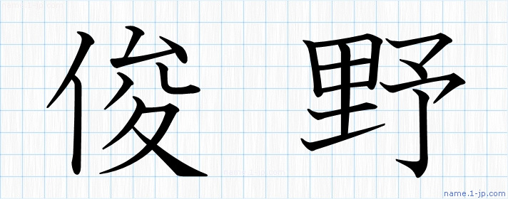 「俊野」習字見本 かっこいい俊野の名前