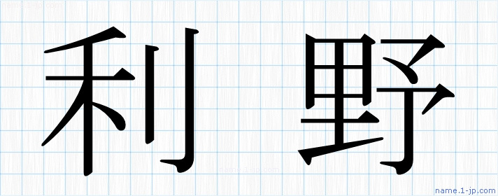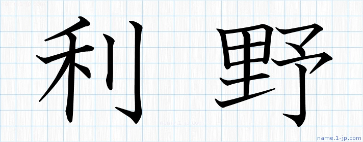 「利野」習字見本 かっこいい利野の名前