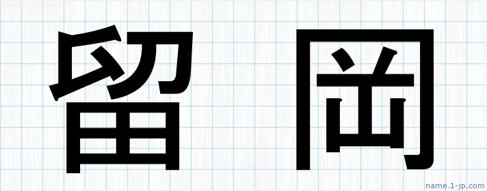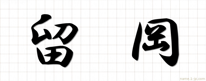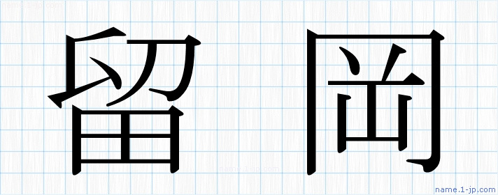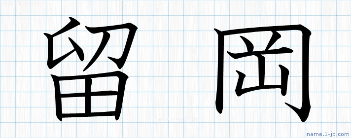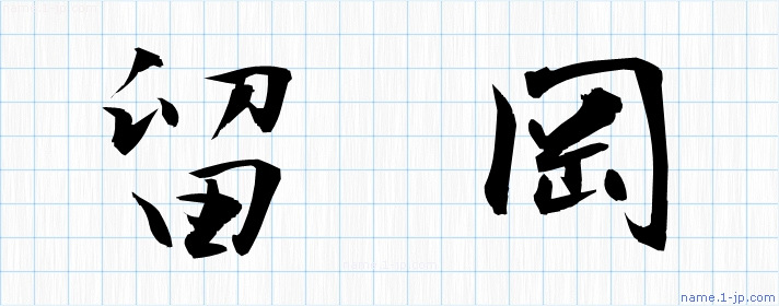 「留岡」名前の見本 留岡書き方