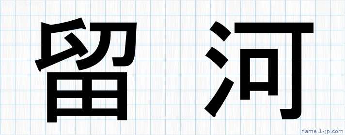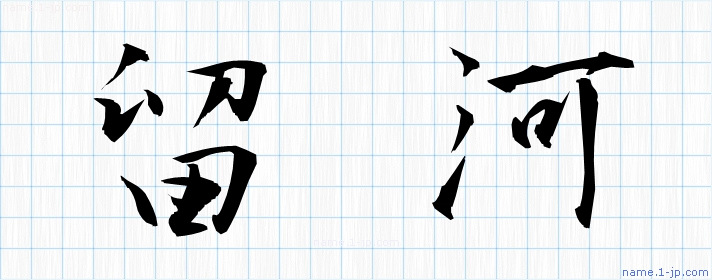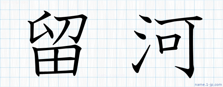 「留河」名前の見本 留河書き方