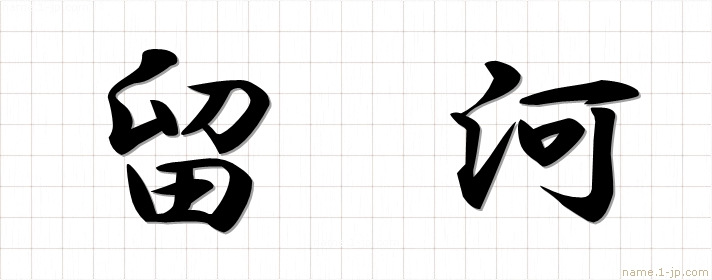 「留河」習字見本 かっこいい留河の名前