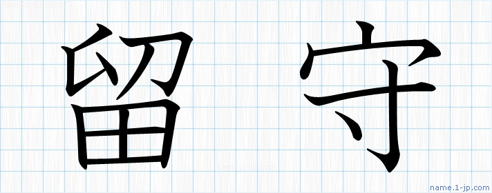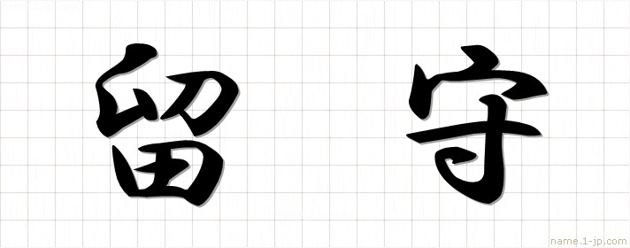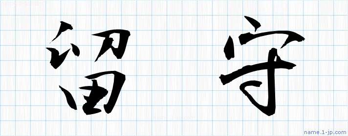 「留守」習字見本 かっこいい留守の名前