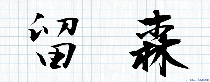 「留森」習字見本 かっこいい留森の名前