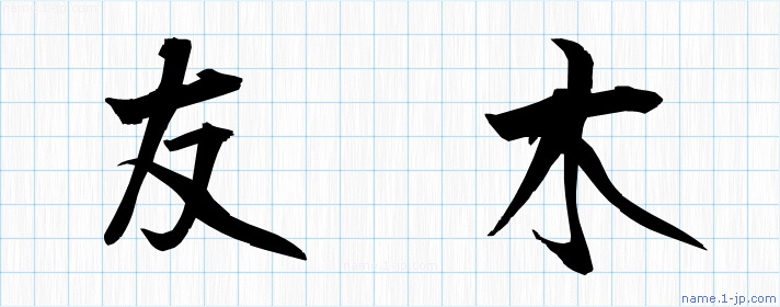 毛筆で書いた習字の見本のように綺麗な「友木」の表記