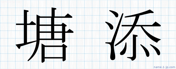 「塘添」名前の見本 塘添書き方