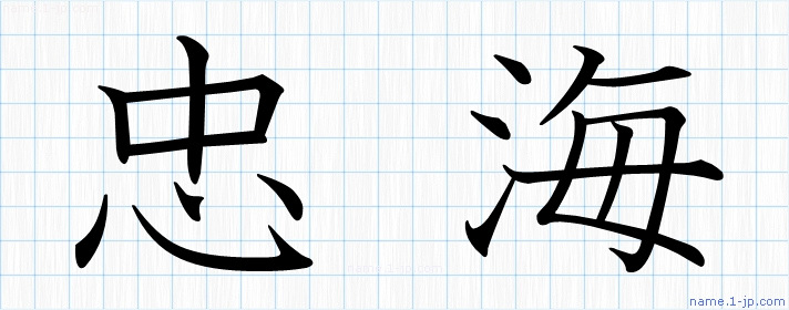 「忠海」習字見本 かっこいい忠海の名前