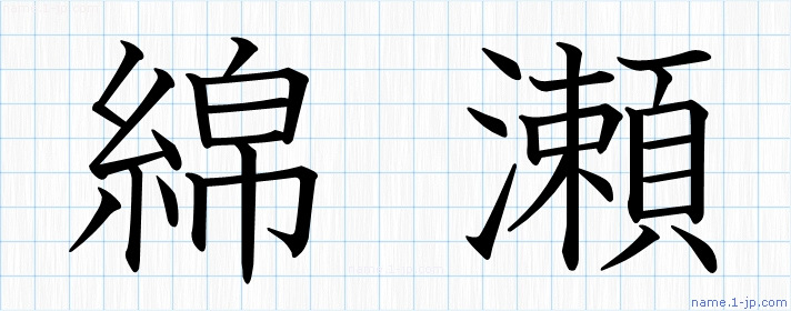 「綿瀬」名前の見本 綿瀬書き方