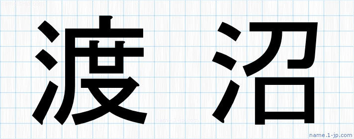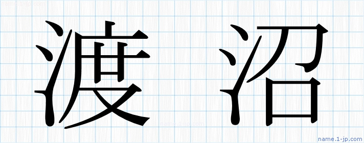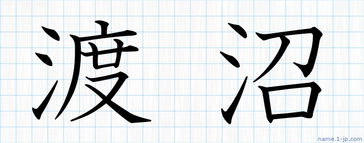 「渡沼」名前の見本 渡沼書き方
