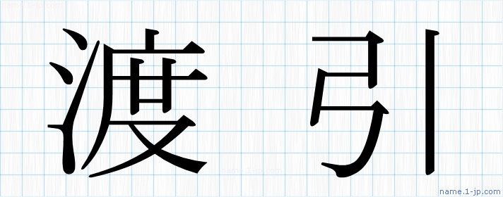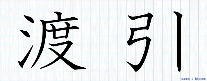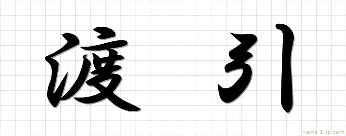 「渡引」名前の見本 渡引書き方