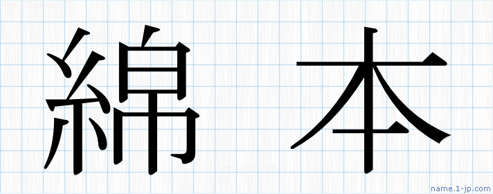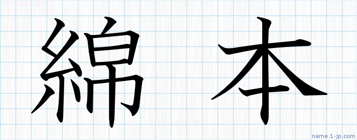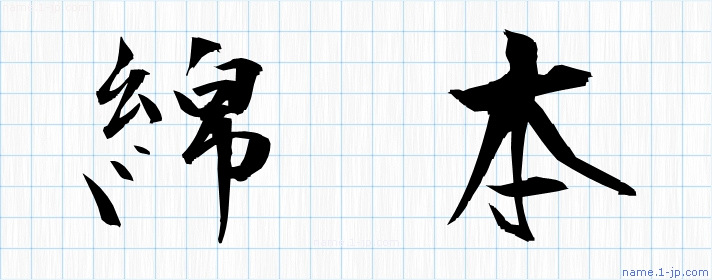 「綿本」名前の見本 綿本書き方