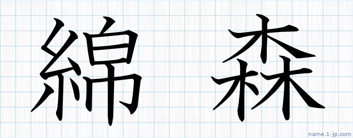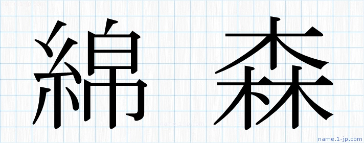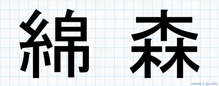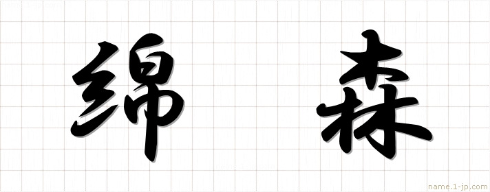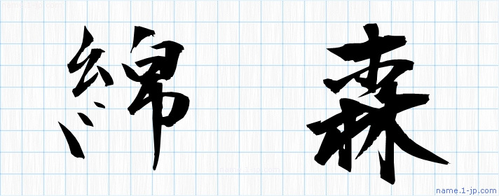 「綿森」名前の見本 綿森書き方