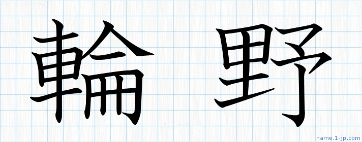 「輪野」習字見本 かっこいい輪野の名前