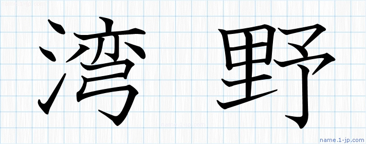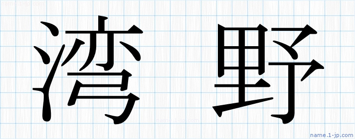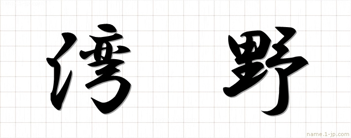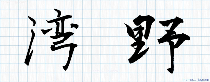 「湾野」名前の見本 湾野書き方