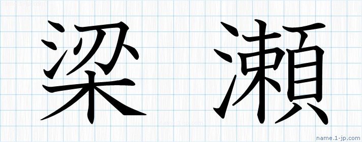 「梁瀬」名前の見本 梁瀬書き方