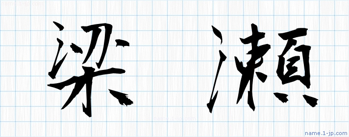 「梁瀬」習字見本 かっこいい梁瀬の名前