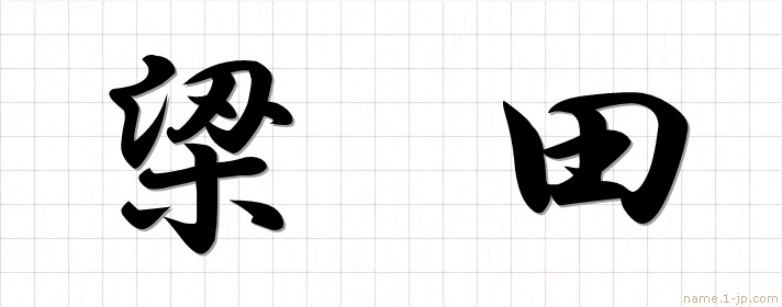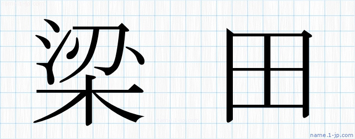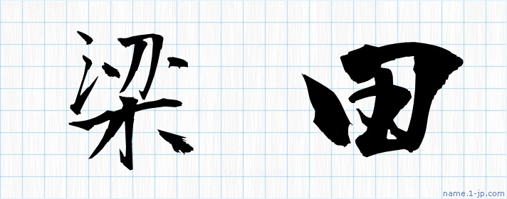「梁田」名前の見本 梁田書き方