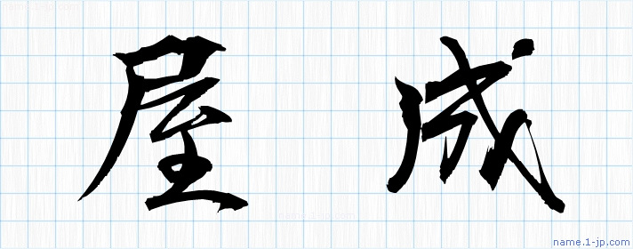 「屋成」習字見本 かっこいい屋成の名前