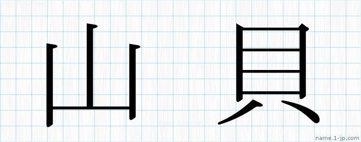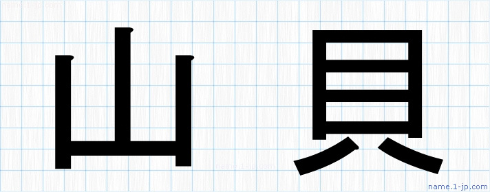 毛筆で書いた習字の見本のように綺麗な「山貝」の表記