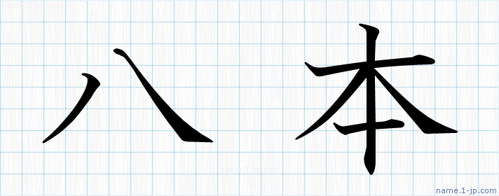 「八本」名前の見本 八本書き方