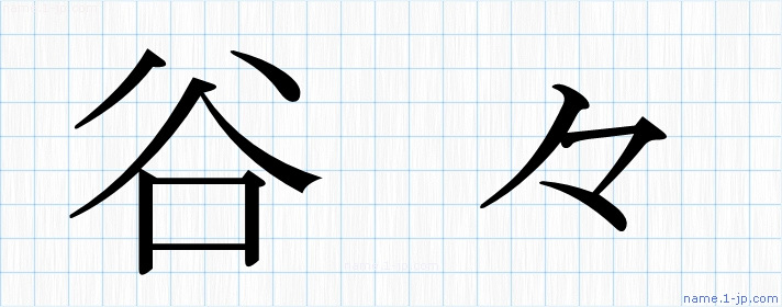 「谷々」名前の見本 谷々書き方