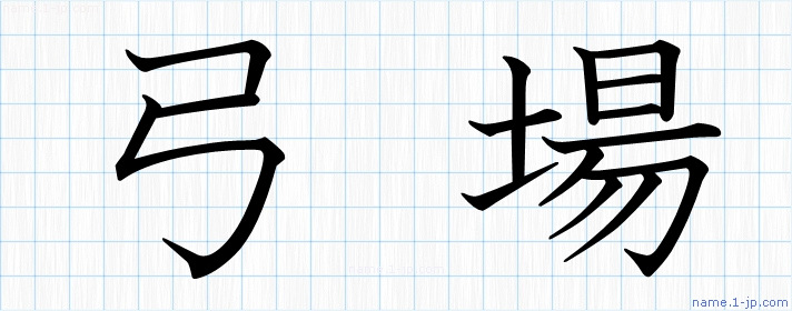 「弓場」習字見本 かっこいい弓場の名前